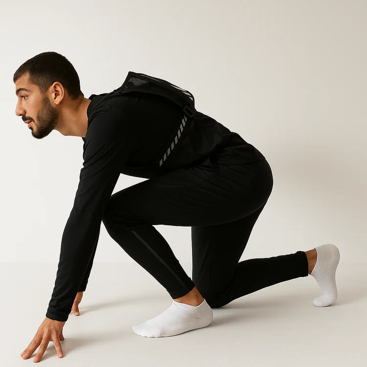 Leicht, atmungsaktiv, angepasst. Du bleibst selbst bei Anstrengung komfortabel. Kein Hüpfen, kein Scheuern, keine Überhitzung.